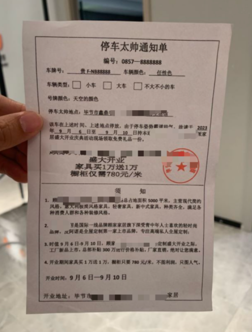 随着时代的进步商家们的营销手段也屡屡创新曾经敲锣打鼓满街游现在营销广告更是无孔不入打广告实属正常但如果没有把握好尺寸逾越法律界限最终只会得不偿失今天这起案例绝对刷新大家的认知近日,毕节市七星关城区的一些车主发现自己停在路边的汽车挡风玻璃上出现了一张纸条车主误以为自己违停被交警开罚单但是仔细一看却是一张“停车太帅通知单”...