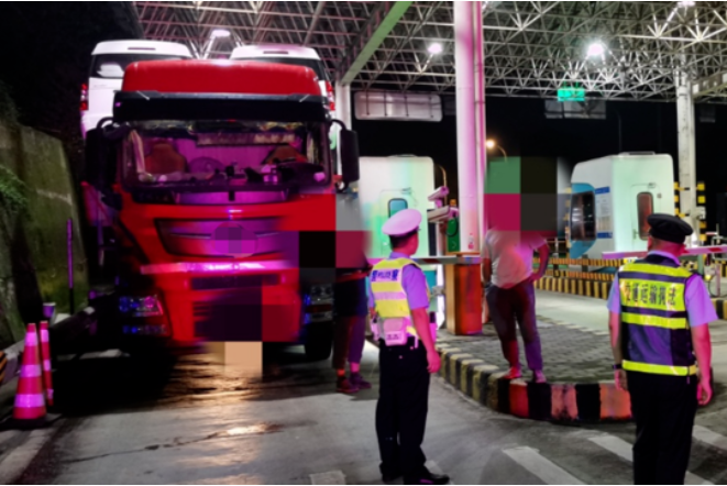 近期,在重庆市G69银百高速公路李渡收费站,有一辆违规装载商品车的宁夏籍货运车辆为逃避违法打击,半夜从装货点出发,不顾工作人员的阻拦,试图强行冲卡进入高速公路。但是没有想到的情况是,因为货物超宽,这辆宁夏籍货车被卡在收费站通道内,就这样违规货车自投罗网了!经过重庆交巡警总队高速公路第四支队涪陵大队民警在现场的调查发现,这...