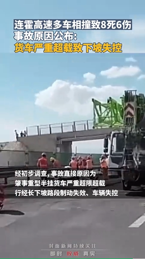 7月17日11时15分左右,G30连霍高速甘肃省张掖市山丹县境内,往新疆方向K2089公里+300米处发生一起过境车辆连环相撞事故,5辆小轿车和3辆货车连环追尾相撞,造成8人死亡,6人重伤。8月10日,公安部交通管理局发布消息,通报事故原因:连霍高速甘肃张掖段“7·17”事故中,肇事重型半挂货车最大允许车货总重49吨,但在河北沧州的中晟矿业有限公司...