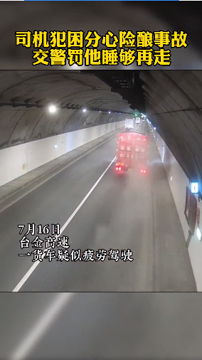 7月16日晚在临海西收费站王某收到了一张特殊的“罚单”23时39分,在S28台金高速湾山隧道路段的快速车道上,一辆红色集装箱货车突然放慢车速,接着车头方向发生偏移,轮胎紧贴着隧道台阶滑行了数十米,隧道内顿时激起一片白茫茫的灰尘。“前方车辆,临海西下高速!”台州交警高速二大队民警刚好巡逻经过,迅速鸣笛示警,并用喊话器不断向司机喊话...