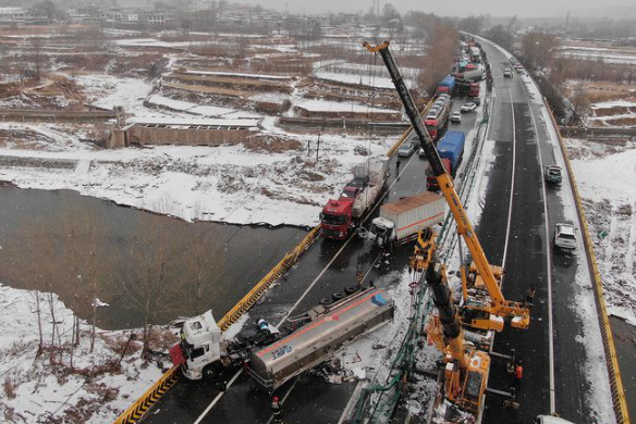 2月18日8时28分,京藏高速公路青海民和往乐都方向发生一起油罐车与多车相撞交通事故,多人被困车内,情况紧急。接到报警求助后,海东市消防救援支队指挥中心立即调派当地消防救援部门迅速出动赶往现场处置。到达现场后,消防救援人员迅速划定警戒区域,现场查看发现,由于雪天路滑导致5辆车连环相撞发生追尾,共致7人被困。其中,一辆半挂柴油罐...