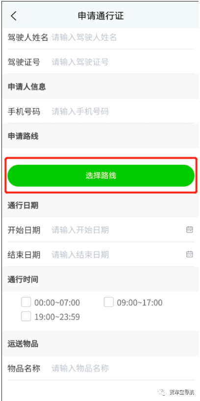 注意:根据车辆通过的路段选择所需行经的路线。