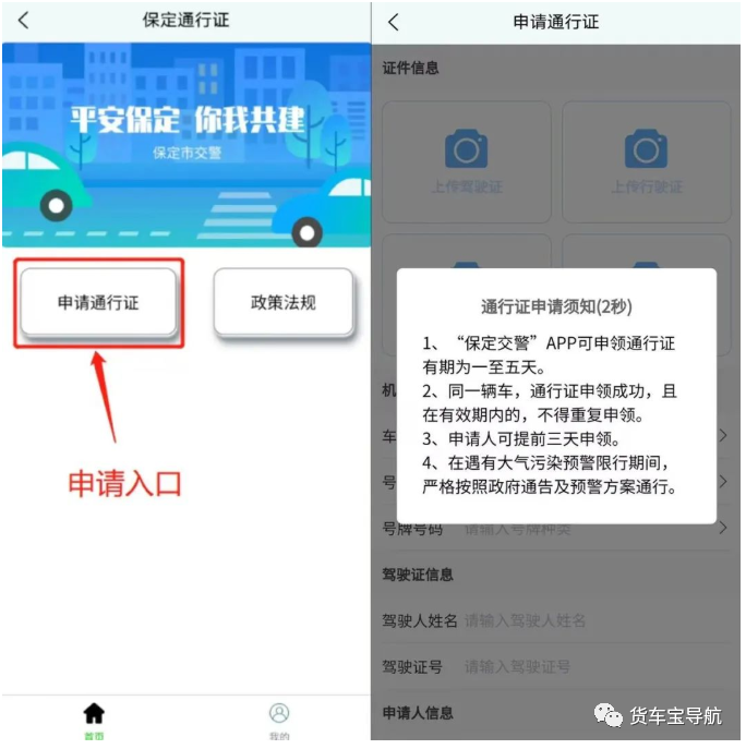 为优化营商环境,深化“放管服”工作,进一步便利城市货车通行,本着“让数据多跑路,群众少跑腿”的原则,保定公安交警开发了新版通行证系统。即日起,所有需要进入保定主城区限行区域的黄牌照货车(危险化学品运输车、工程车除外)可使用“保定交警”APP办理货车通行证。