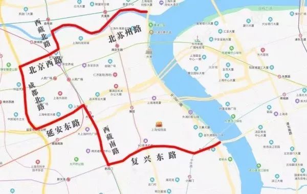 2022年12月31日20时至2023年1月1日1时,自外白渡桥/北苏州路路口起,沿北苏州路—西藏北路—北京西路—成都北路—延安东路—西藏南路—复兴东路—外马路至黄浦江边止组成的范围内(不含上述道路)禁止一切车辆通行。延安高架路南侧江西路下匝道实施临时关闭措施(仅允许车辆从外滩隧道通行)。