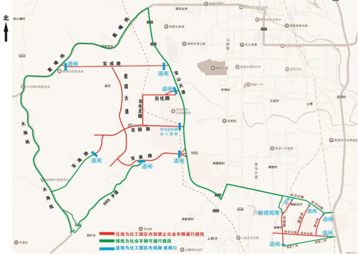 (一)化工园区卡口实施24小时全封闭管控,封闭区域严禁非园区单位相关车辆和人员进入,过境车辆请绕行。园区内单位车辆和人员经宝山经开区化工园区安全风险智能管控平台系统登记备案后可自动识别进出,外来车辆和人员需提前通过鹤壁宝山公众号车辆预约系统预约,经批准同意后方可进入。