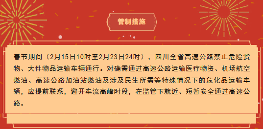 四川省春节假期危险品车辆高速限行通知