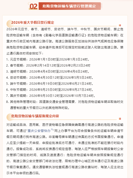 重庆春节假期危险品车辆高速限行通知