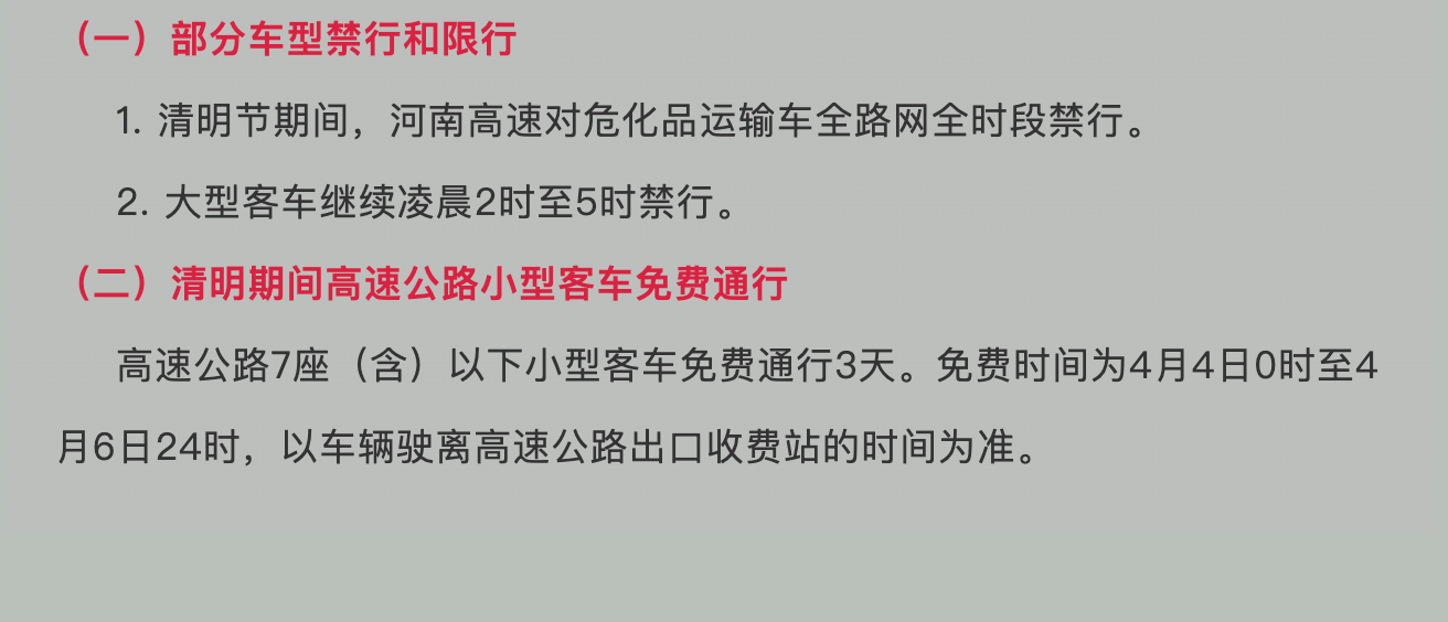 2026年清明节期间河南高速公路禁止危险品运输车通行的通告