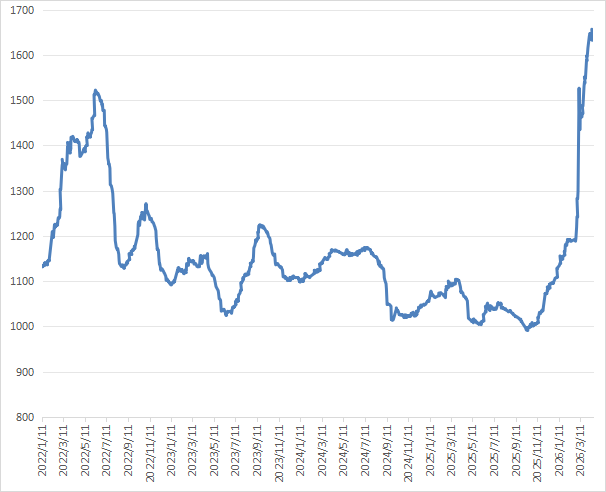 图2:2022年1月—2026年4月华南指数走势(基数:1000)