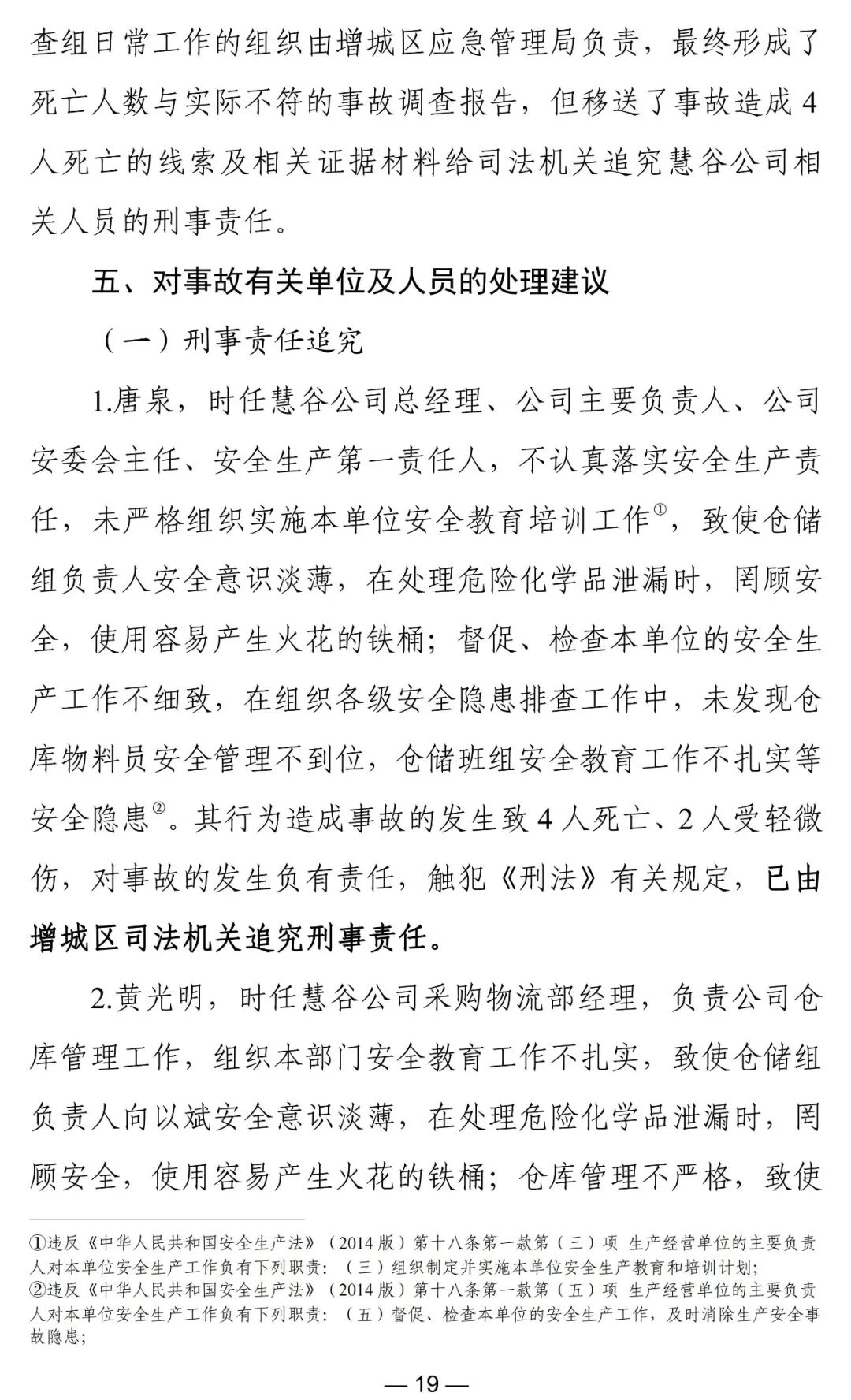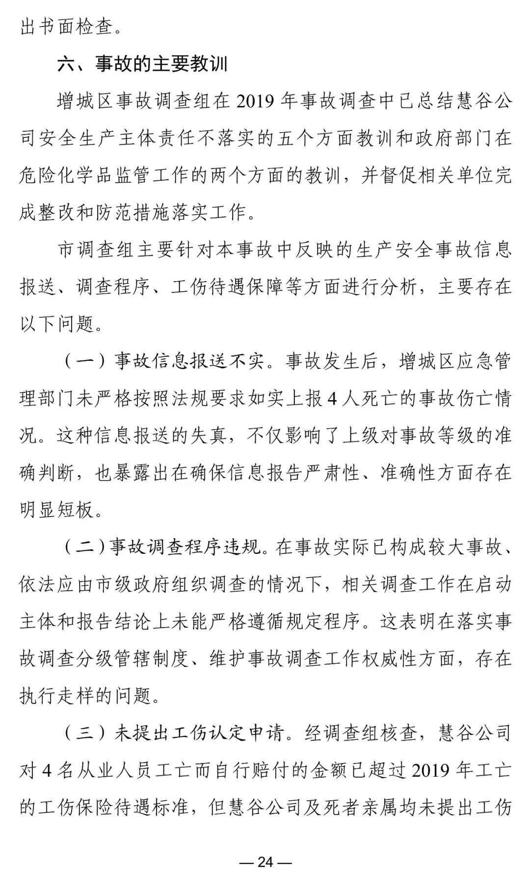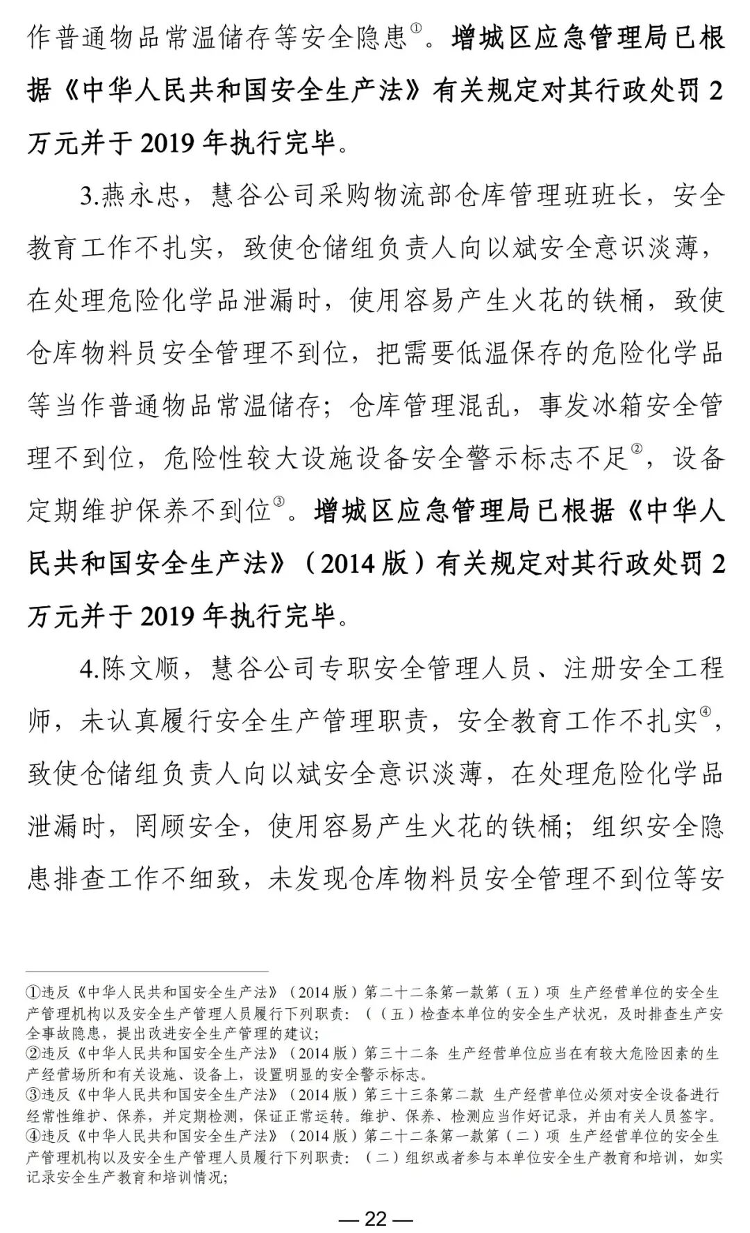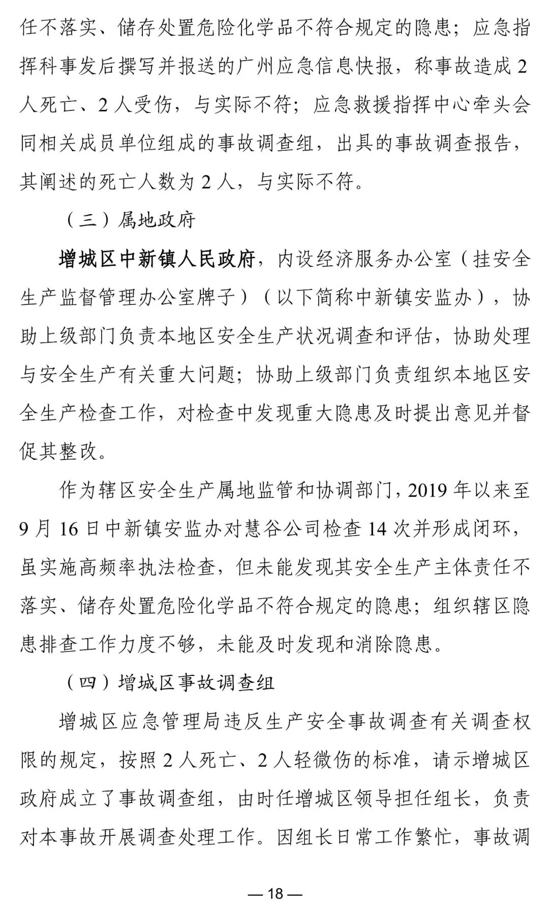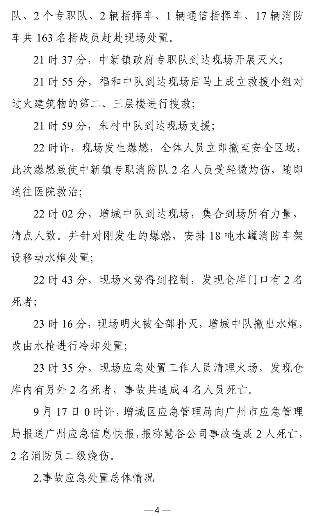 2019年9月16日21时25分,位于广州市增城区中新镇大田村的广州慧谷工程材料有限公司(现已注销,以下简称“慧谷公司”)C1幢仓库首层小仓库发生爆燃事故,造成4人死亡,2人受轻微伤,直接经济损失4674687.38元。