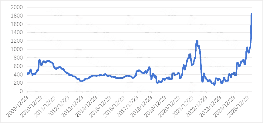 硫酸是硫磺下游重要应用领域,占到硫磺总消费量的90%以上,此次硫磺价格上涨,也带动了硫酸价格快速上行。根据相关数据显示,截至2026年4月中旬,中国硫酸市场价格已经突破1800元/吨,较前期高点出现了62%以上价格差距,是日均统计价格的历史最高水平。