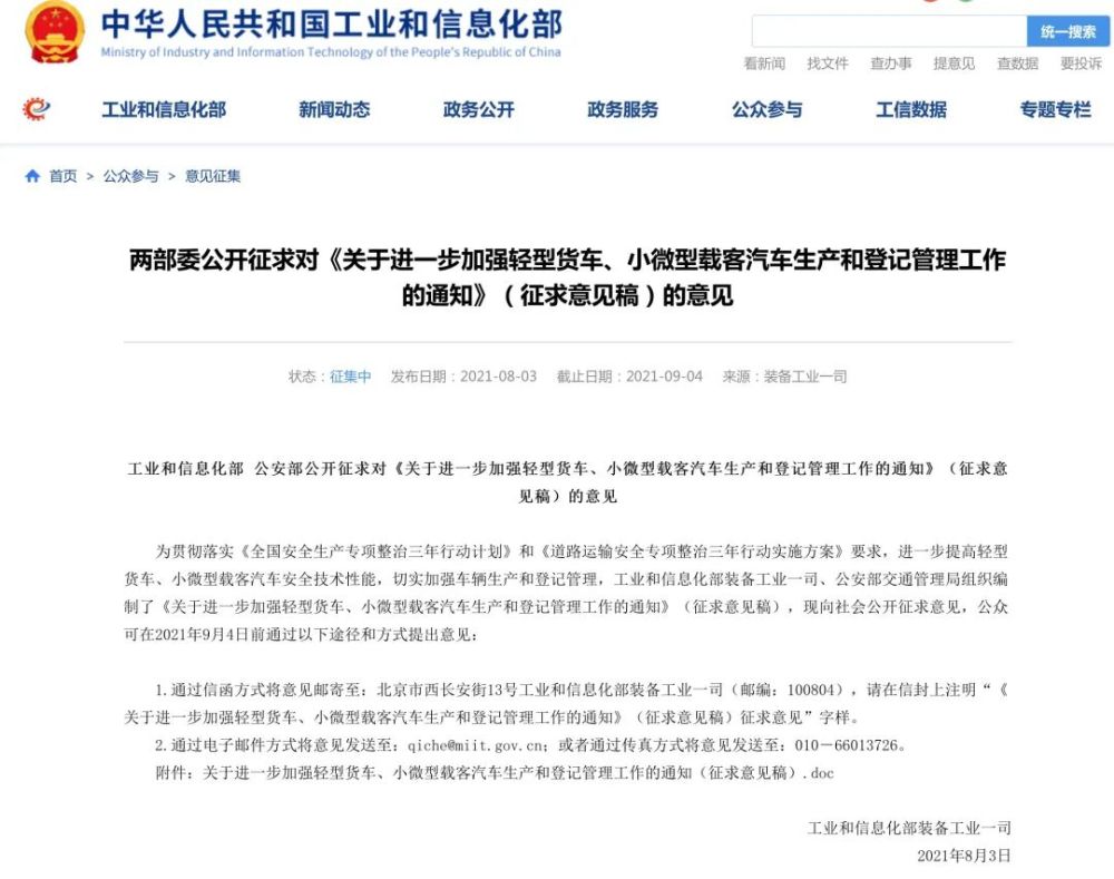 具体详细意见稿和车辆参数要求可登录中华人民共和国工业和信息化部进行详细了解。