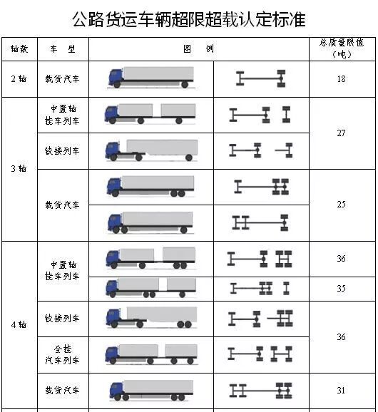 现如今,货车超载的情况是比较多的。但货车的大小不同,本身规定的准载重量也就不一样。那通常情况下货车运货多少构成超载呢?对超限超载车辆的认定标准,交通部、公安部、国家发展和改革委员会、国家质量监督检验检疫总局、国家安全生产监督管理局、国家工商行政管理总局、国务院法制办公室七部委联合下发交公路发[2004]219号文件规定,在集中治理超限超载期间,超限的认定标准为:2、三轴车辆,其车货总重超过30吨的(双联轴按照二个轴计算,三联轴按照三个轴计算,下同);超载的认定标准为虽未超过上述五种标准,但车辆装载质量超过行驶证核定载质量的。