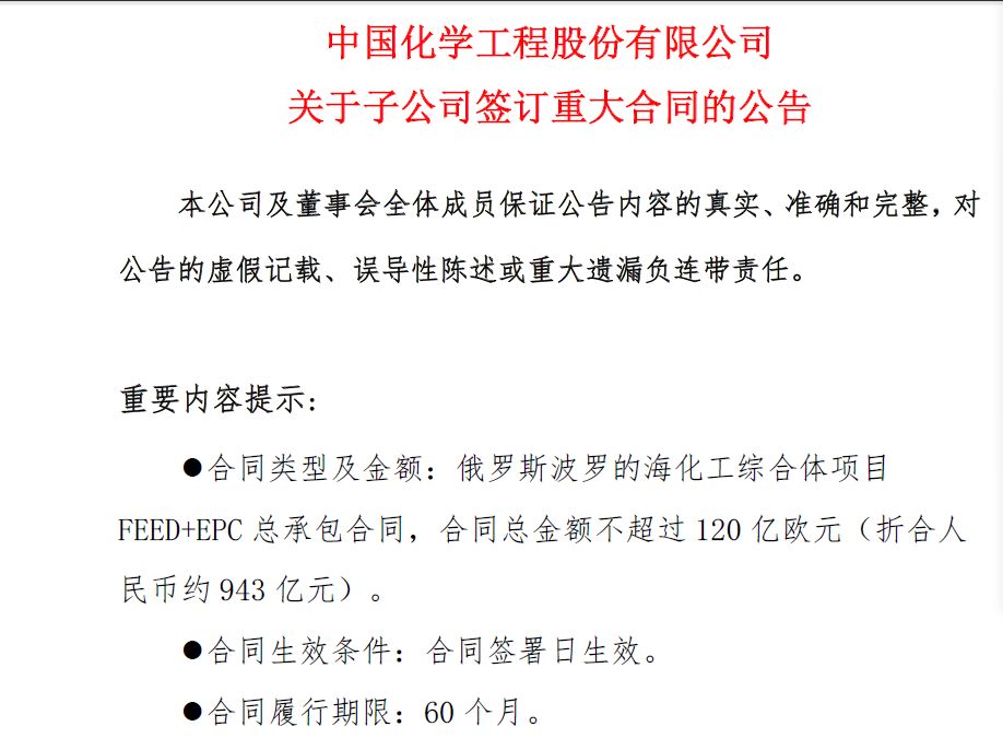 此次签下的近千亿合同,对中国化学意味着什么?