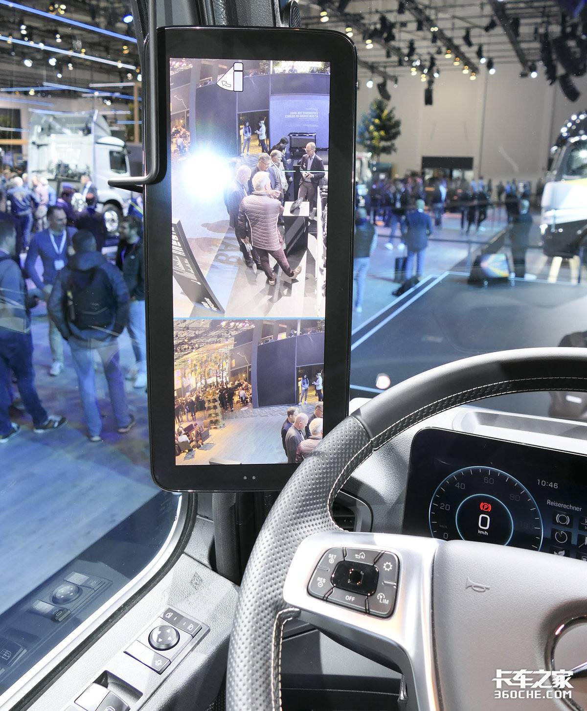 车展上,奔驰展台的全系公路运输卡车则全部搭载了MirrorCam2.0电子后视镜系统。